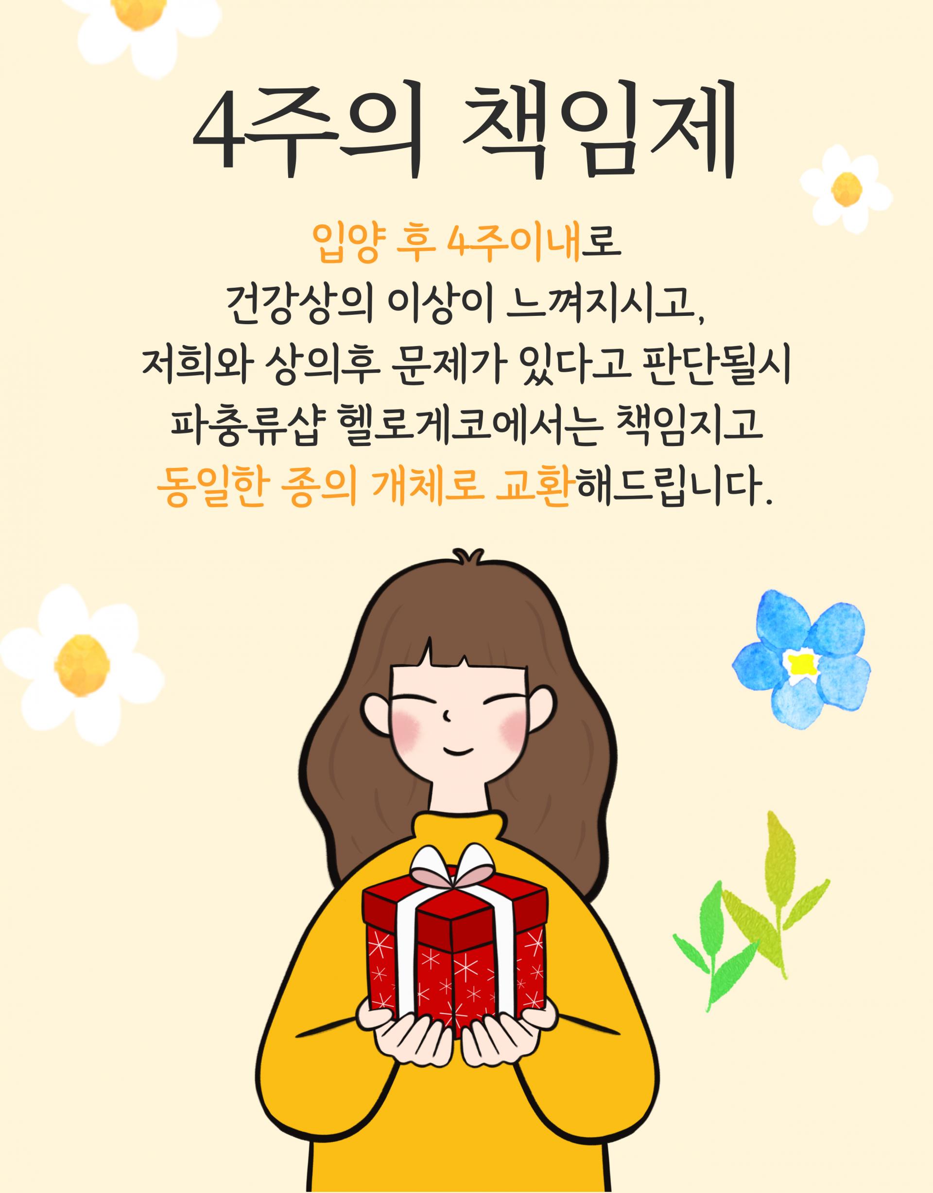 -입양후 4주의 책임 교환제도로 담당자와 협의하에 해당 개체에 건강상의 문제가 발견될 경우,